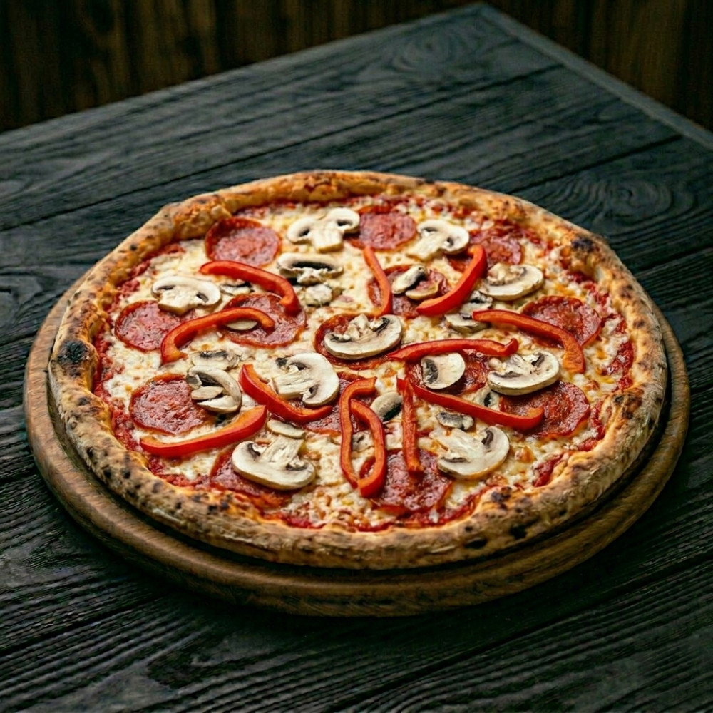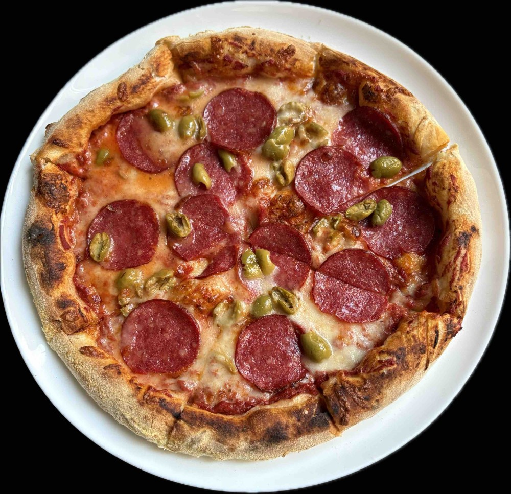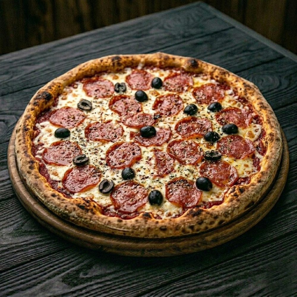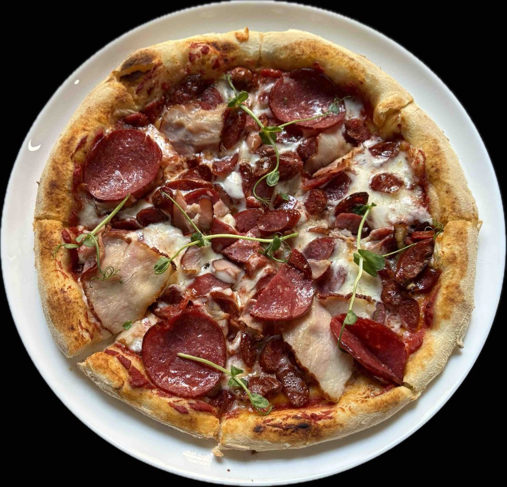 Склад: салямі, бекон, шинка, курка копчена, ковбаски мюнхенські, сало, картопля, морква, цибуля, маслини, огірки мариновані, томатна паста, олія оливкова, лимон, хліб, сало, сметана, гірчиця, кріп.