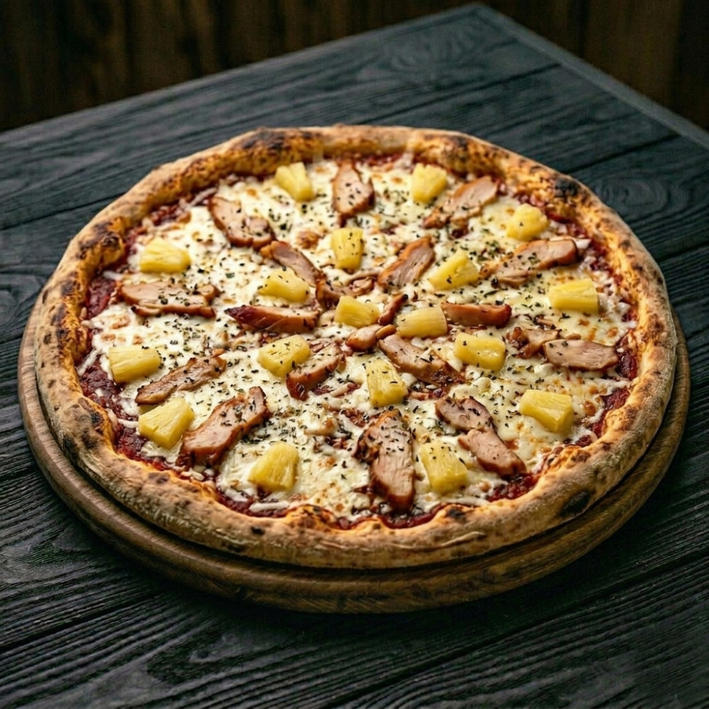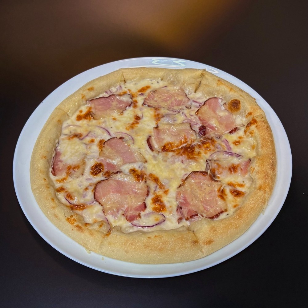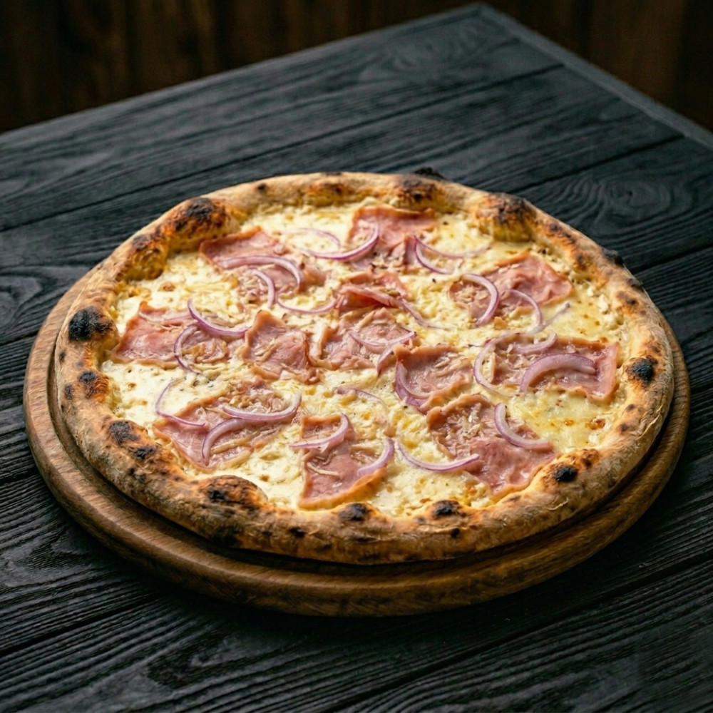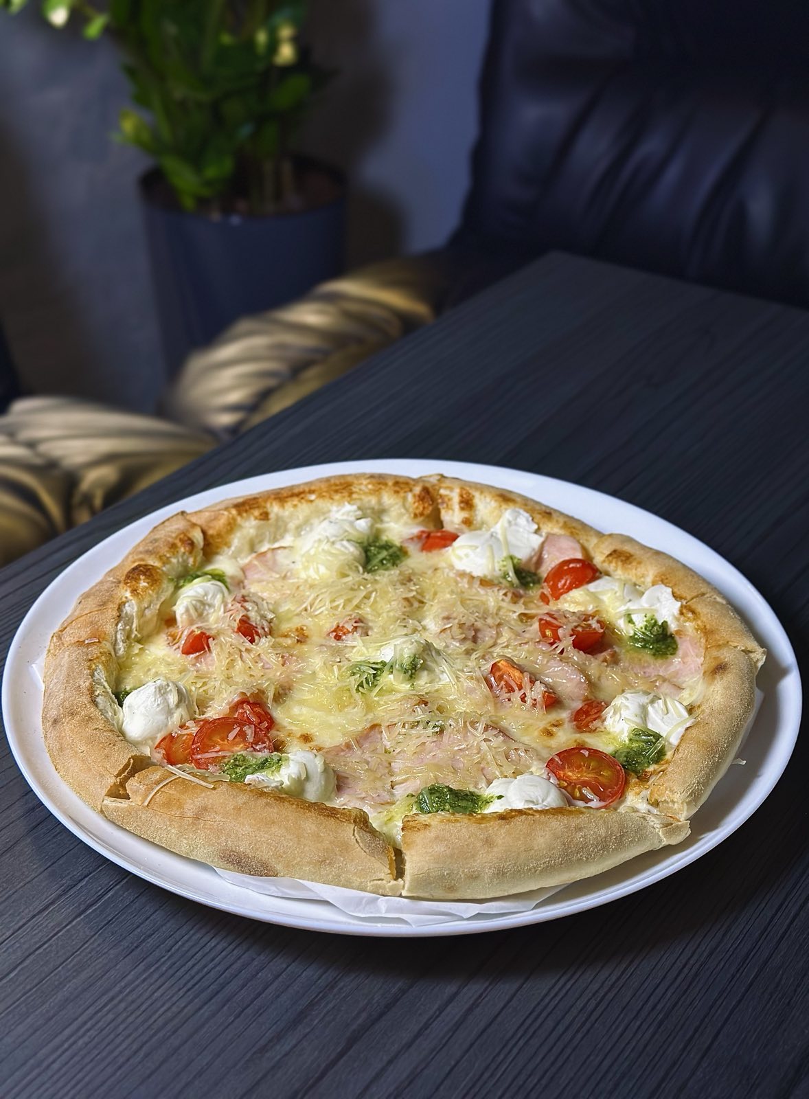 Склад: котлета яловича, булка Бріош, бекон, айсберг, помідор, цибуля кранч, соус BBQ, сирна лава.