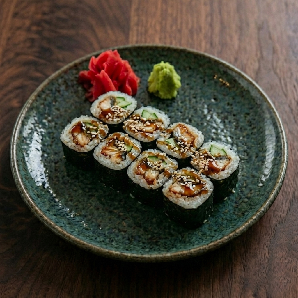 Склад: рис, вугор, соус унагі, норі, кунжут.
